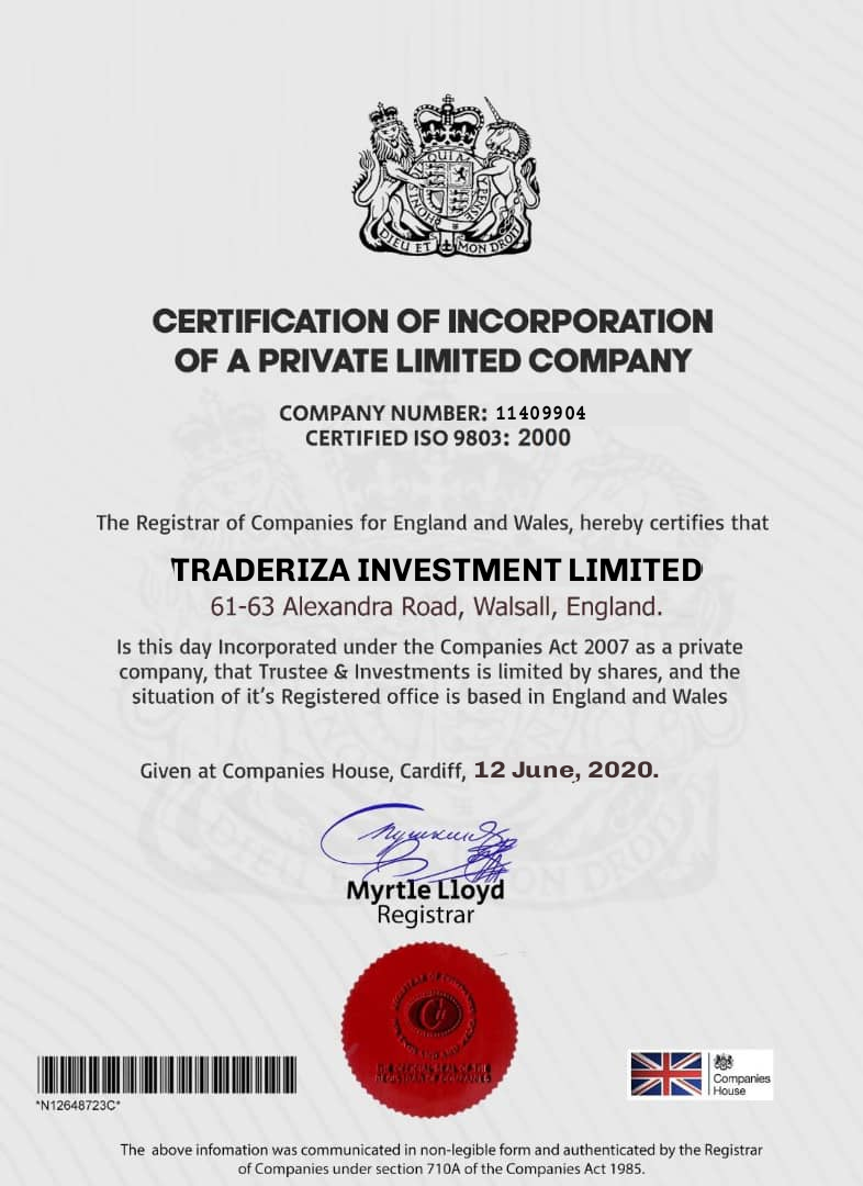 TradeRiza operates with complete legal backing and transparency, holding official registrations that demonstrate our commitment to international standards.